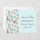 Save the date birthday / event postcard with a cute fruit pattern line drawing style. Light green and yellow colors.