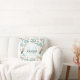 A pillow with a cute fruit pattern line drawing style. Light green and yellow colors. A fun summery design. A white circle layered over top with your name and monogram initial inside.