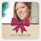 Sweet and charming Cute Bow Graduation Stickers featuring a whimsical polka dot fuchsia pink bow and faux paper texture background. Easy to customize, simply add a photo and your personalized text in the text fields provided.