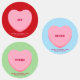 Pink heart on light green, red and blue background colors. All colors are editable.
