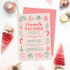This fun holiday party invitation features whimsical hand-drawn Christmas illustrations in red and dark green over a light pink background. The modern typography greeting says "Favorite Things". Customize this design further by adding a photo and/or additional text to the back. The look is fun, modern, and festive! DESIGN TIP: Background and text colors are customizable by using the editor tool.