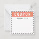 Front: Black dashed line border to look like a coupon clipping. Top section has a salmon background with white text that says "COUPON" in a strong bold font. Below it is "REDEEM FOR" in a thin black coordinating font for a minimalist look. The white area underneath is left blank for your handwritten coupon details (or add text to this design before ordering).