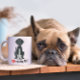 Cuddly, happy wagging tail dog design. This design features a best friend dog family pet, pet dog cute fun heart, a whimsical fun funny humor love my dog saying, a simple minimalist minimal adorable, puppy doggie cartoon graphic, a gift for pet dog lovers, a trendy stylish modern typography design, coffee tea drinks cup drinkware, custom customize dog name illustration