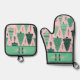 Cute Fun Pink & Green Christmas Tree Pattern Name Oven Mitt & Pot Holder Set