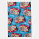A unique and fun awesome epic retro music illustrated vinyl record neon jukebox pattern electric blue background cartoon pattern vinyl aesthetic classic vintage aesthetic oldies nostalgia gift music style favorite singer in concert illustrated cool music design deluxe kitchen towel. Get a fun jukebox pattern kitchen towel today.