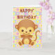 Cute Funky Pattern Monkey Design Birthday Card featuring a cartoon monky ina kawaii style with bright pastel color background design