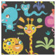 Cute and colorful African fun safari animals pattern nursery fabric for kids room decoration and craft works. Pattern include cute funny giraffe, zebra, tiger, lion, monkey, elephant, crocodile, snake, birds, lizard, etc.