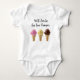 Everyone will smile when they see your adorable baby wearing this funny bodysuit declaring that ice cream makes them smile. Designed with three ice cream cone graphics presented on versatile while but available in blue and pink.