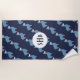 Adorable blue fluffy llamas patterned beach towel with initial letters in the center. Relax at the beach with this blue llamas patterned beach towel!