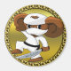 A cute funny cartoon cheburashka with big brown ears and a black belt. Sword in his left hand. With a gold background and gold frame. Let this entertaining humorous funny design do the talking for you.