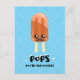Cute and funny card featuring an adorable kawaii illustration of an orange popsicle with a mustache, the text "Pops, you're the coolest" in decorative snow-inspired typography set on a hand-drawn pattern of white dotted circles on a light blue background. Add your message in matching lettering on the inside. Perfect for celebrating dads especially on Father's Day.