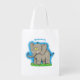 Cute funny elephant with bird on trunk cartoon grocery bag