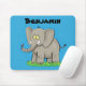 Cute funny elephant with bird on trunk cartoon mouse pad