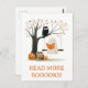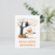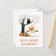 Anyone would love to receive this cute, funny fall autumn Halloween postcard featuring a cute ghost, owl, and pumpkin theme encouraging people to read more books! Great for any book lover!