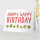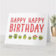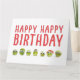 Make people smile. A fun group of brussel sprouts with tiny hats and wobbly eyes that look right at you. Happy Birthday in big red modern contemporary wording. Personalize it with your own message.
