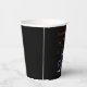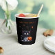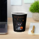 Cute Funny Black Kitten Halloween Paper Cups. A fun and spooky trick-or-treat trivet featuring a wide-eyed, cute yet scary kitten wearing a sheer ghost costume! The playful kitten's eerie expression and whimsical outfit add a touch of Halloween charm. Add your own text or use "Happy Halloween".