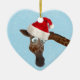 Send your friends warm and fuzzy Seasons Greetings with this cute funny giraffe in a santa hat Christmas heart shaped ornament. It's sure to be a hit with adults and children alike - nobody can resist this adorable animal character! Personalize the reverse of the ornament with your own festive message. If you need assistance customizing your product please contact me through my store and I will be happy to help. Beautiful, funny and cute personalized custom giraffe products by Just Giraffes at Zazzle.