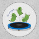 Cute funny green beans on trampoline cartoon patch