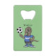 Cute funny Komodo dragon playing soccer cartoon Credit Card Bottle Opener