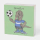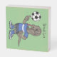 Cute funny Komodo dragon playing soccer cartoon Wooden Box Sign