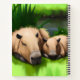 Add a touch of whimsy to your journaling entries with this funny notebook, which features AI-generated artwork of a mother capybara and one of her offspring indulging in a siesta in the sunlit grass by a river. Reverse shows identical design.