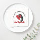 The product design features a penguin holding a big red heart. This charming animal illustration makes cute funny and unique paper napkins with personalized text for Valentine’s Day - Happy Valentine's Day!