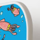 Features our funny cartoon squid swimming in a sea of bubbles pattern. Calamari anyone?