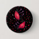 Funny alien button with a cute illustration of red characters with three eyes flying with their tiny wings and smiling happily. Red and grey leaves flying all over. This illustration is mixed media - the body of the aliens is made from a watercolor drawing of abstract leaves and the rest is digitally painted.