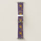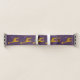 Funny giraffe Apple watch band with a cartoon giraffe nibbling on a light purple flower and holding some flowers with its tail while roller skating, over customizable dark purple background. This cute giraffe design will appeal to girls who love giraffes and cute cartoon illustrations, as well as the lovely purple color. It will make a great gift for a skater girl, too.