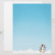 A cute winter illustration: a penguin with gloves and earflap in a good mood is walking in the snow.