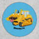 This funny yellow bulldozer eats dirt! Drawn in happy cartoon illustration style with tongue and eyes to create a cute character for the budding construction worker!