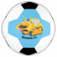 Cute funny yellow bulldozer cartoon character soccer ball