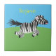 Cute funny zebra running cartoon illustration ceramic tile