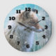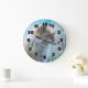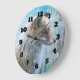 Cute Furry Fox on Blue Grunge Background Large Clock