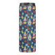 Carry your favorite beverages wherever you go with this cute personalized thermal tumbler. The bottle has has a retro modern style with illustrations of cute garden gnomes with white beards set against a navy blue background and surrounded by flowers in red, yellow and light blue on green stems. It's ready to be personalized with your name in navy blue lettering set inside a light blue colored box.
