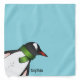 Destei's original cartoon illustration of an adorable Gentoo penguin wearing a green scarf on a blue background color. There is also a personalizable text area.
