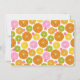 You'll love keeping putting pen to paper with these stylish personalized stationery notecards featuring a colorful geometric flower fruit pattern in orange, pink, and lemon and your name in script handwriting.