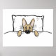 Cute drawing of a light colored German Shepherd Dog tucked into bed. This fun art print makes an original gift for a GSD lover. @Jenn Kay