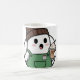 A cute coffee mug featuring an adorable cartoon ghost holding a cup of coffee.