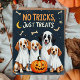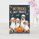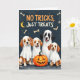 Cute ghost dogs funny Halloween card is a festive way to send Halloween wishes. The front says "No Tricks, Just Treats" and you can customize the inside text with your own personalization.