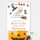 Featuring cute watercolor of baby ghost and Halloween aesthetics. A little boo is almost due! Halloween themed baby shower with watercolor ghost, black cat, witch's hat, magic mop ( broomstick ), spider hanging from a web. The little ghost is eating a lollipop.