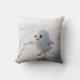 A whimsical white ghost joyfully running along the ocean beach, leaving playful footprints in the soft, sandy beach