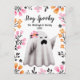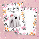 This halloween design features a spooky cute whimsical ghost in a watercolor style surrounded by spooky florals in a color palette of pastel pink, orange and black. You can modify all the text. On the back of the design is a floral border and space for you to write your message.