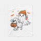 Cute Ghost Walking Dog Coquette Bow Halloween Dog Fleece Blanket