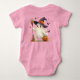 Dress your little one in spooky-sweet style with this adorable Halloween baby bodysuit! Featuring a smiling ghost in a purple witch hat holding a broom and pumpkin bucket, surrounded by bats, autumn leaves, and crescent moons. Soft, comfy, and perfect for Halloween parties, trick-or-treat photos, or cozy fall days. A charming gift for baby’s first Halloween.