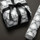 This roll of gift wrap is sweet and a little bit spooky with a pattern of happy little ghosts afloat on a soft gray background among a diamond pattern of black bows that give a girly gothic coquette vibe. While Halloween isn't a huge gifting holiday, there are lots of reasons to be generous and on theme for Little Boo baby showers and October birthday parties.