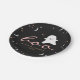 Cute halloween black paper plate featuring silly funny ghosts, "boo" text in pink, and sprinkles of silver moons and colorful stars. Personalize with short greeting message and/or year. Great for Halloween themed party decoration.