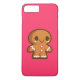 A cute illustration of a brown gingerbread man cookie. Soft pink buttons and squiggly frosting accents on his arms and legs. A festive and fun theme for the christmas holiday season.