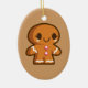 A cute illustration of a brown gingerbread man cookie. Soft pink buttons and squiggly frosting accents on his arms and legs. A festive and fun theme for the christmas holiday season.