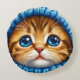 Adorable ginger cat face printed on a soft decorative pillow wearing a blue knit hood. Charming, whimsical home decor perfect for nurseries, kids' rooms, cozy living spaces, gifts, and pet lovers.